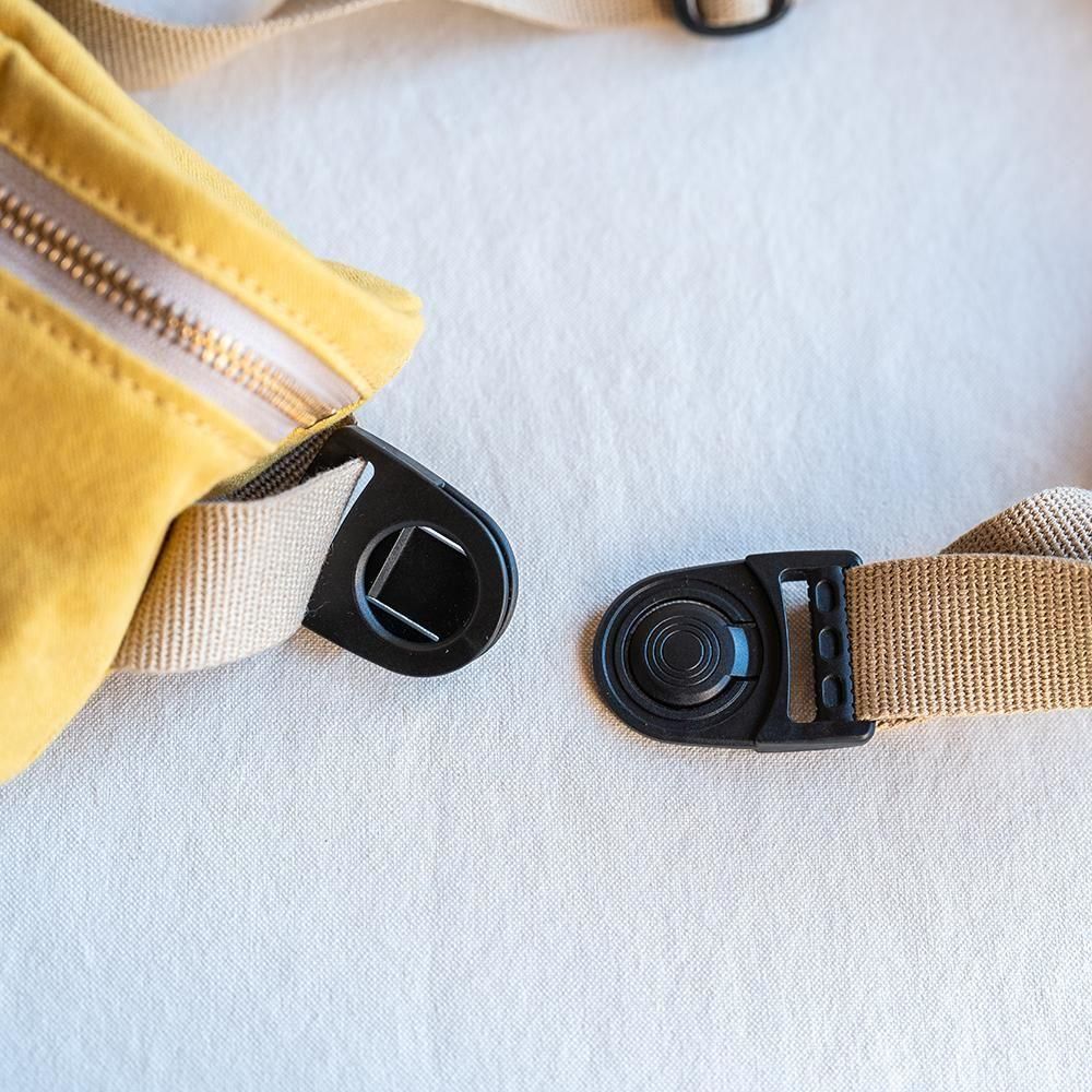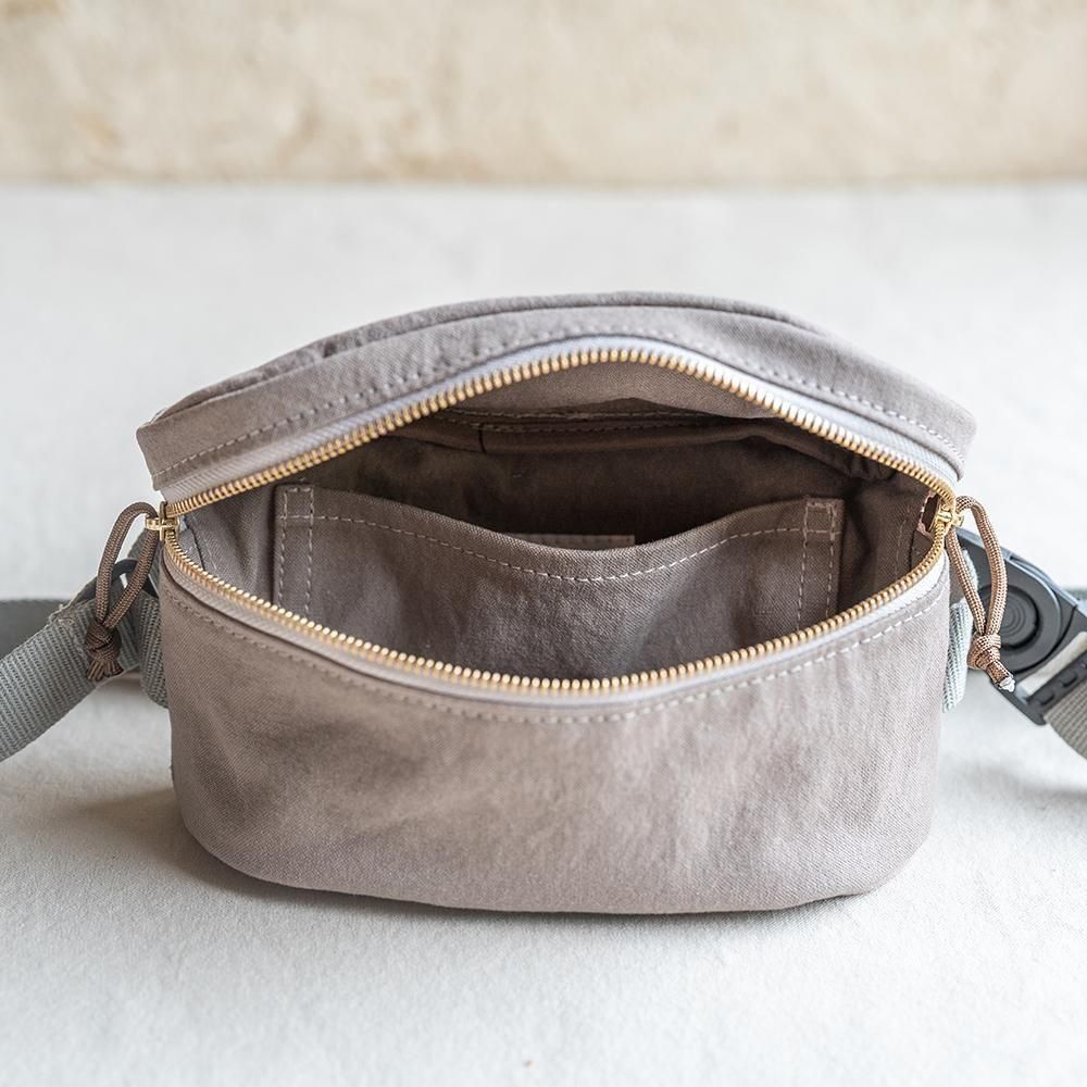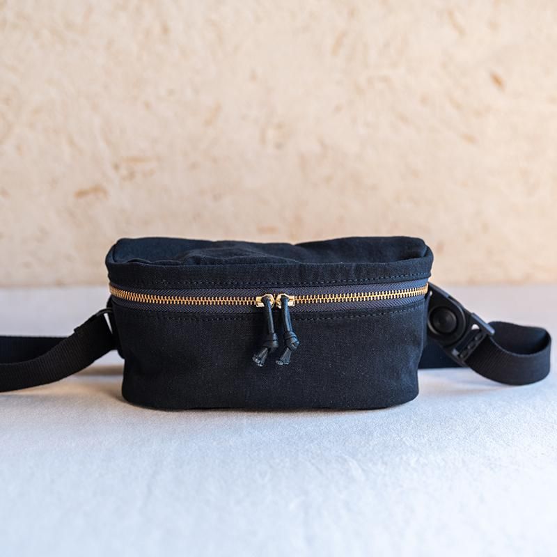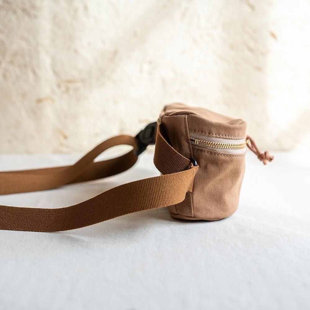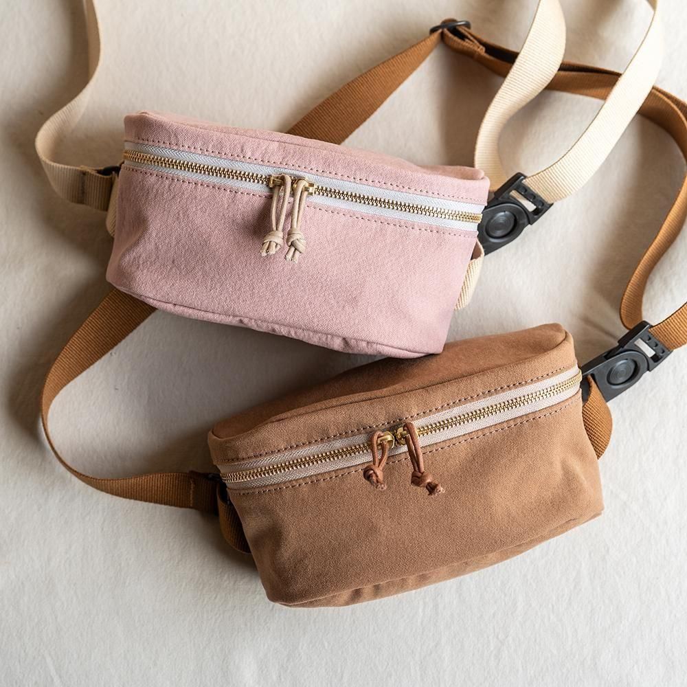 This waist pouch is crafted from lightweight, durable canvas.